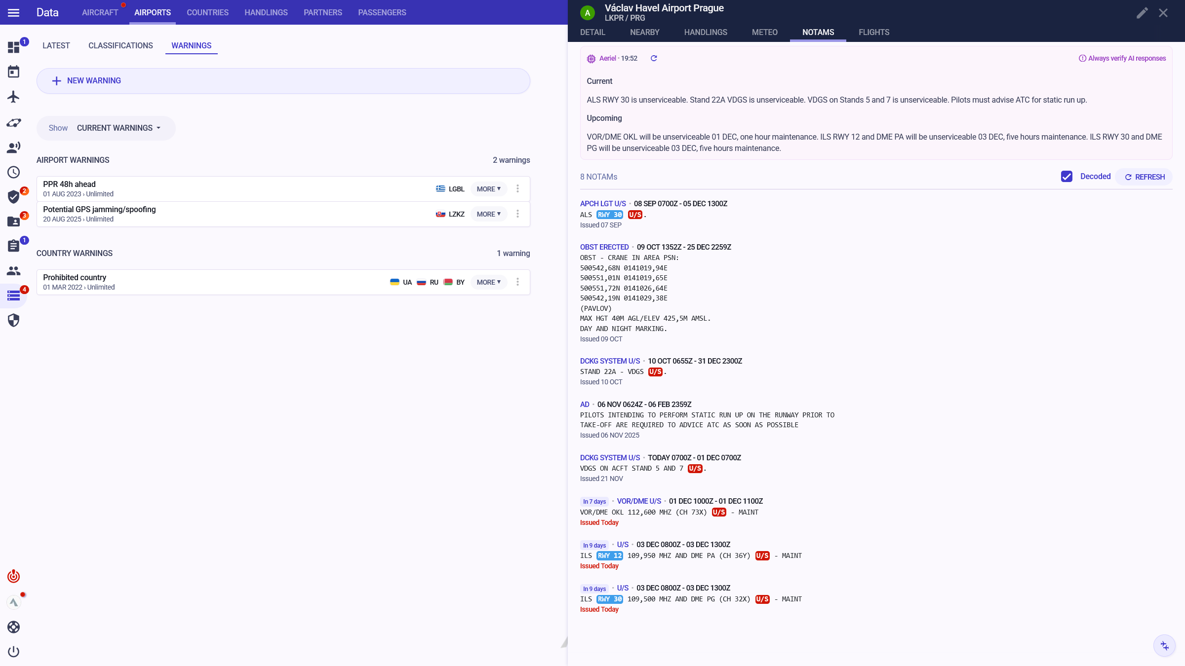 Aeriel AI extracts the most important info from published NOTAMs, helping you to stay informed and to plan with ease.