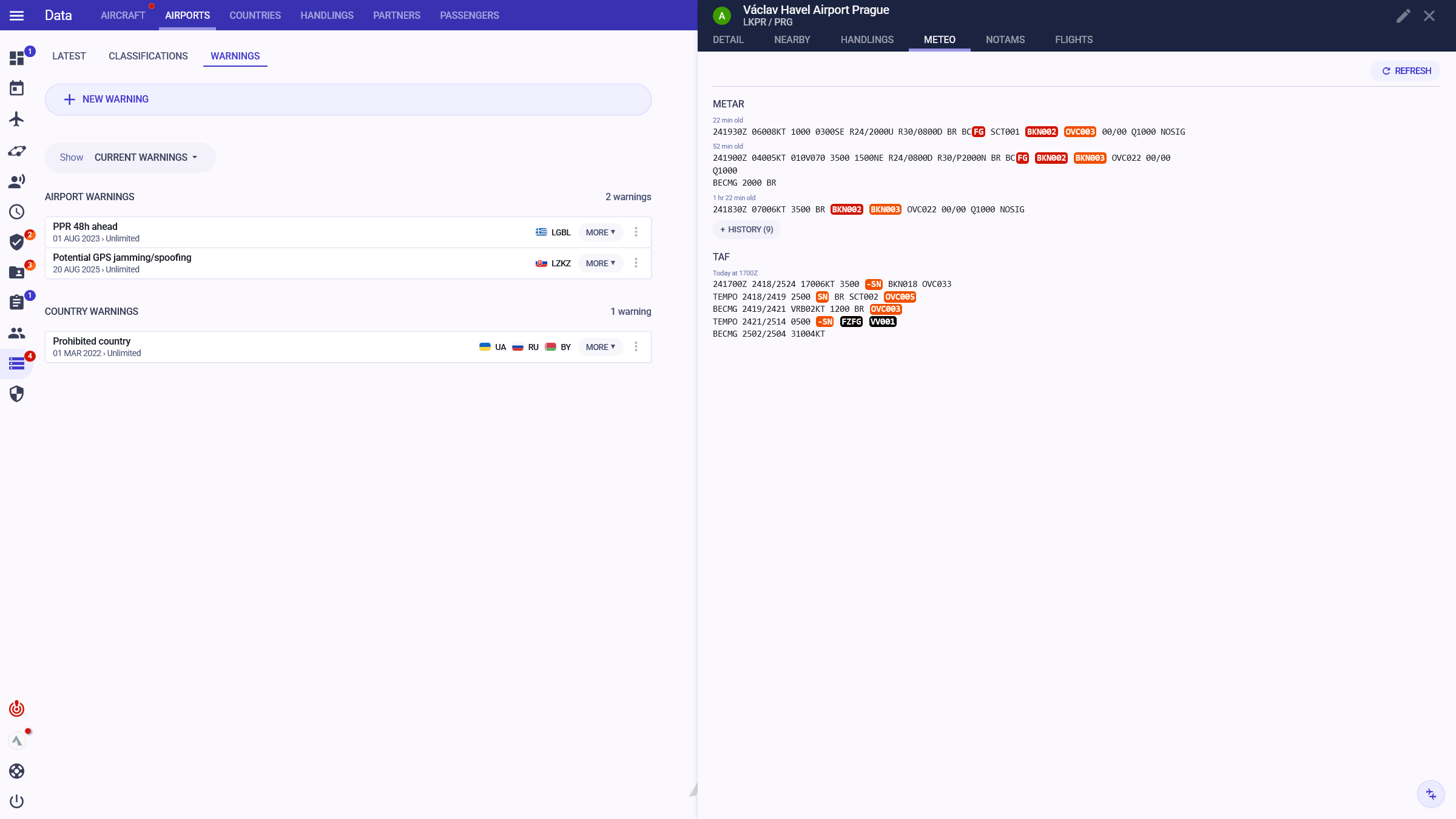 Receive warnings about assigned CTOTs from EUROCONTROL. Monitor flight plan status, including Ready for Improvement and Ready to Depart statuses.