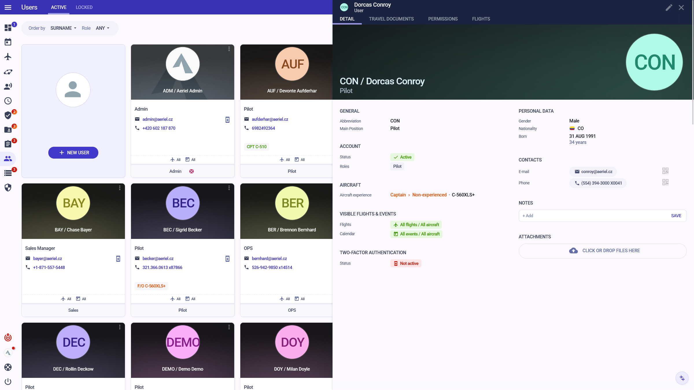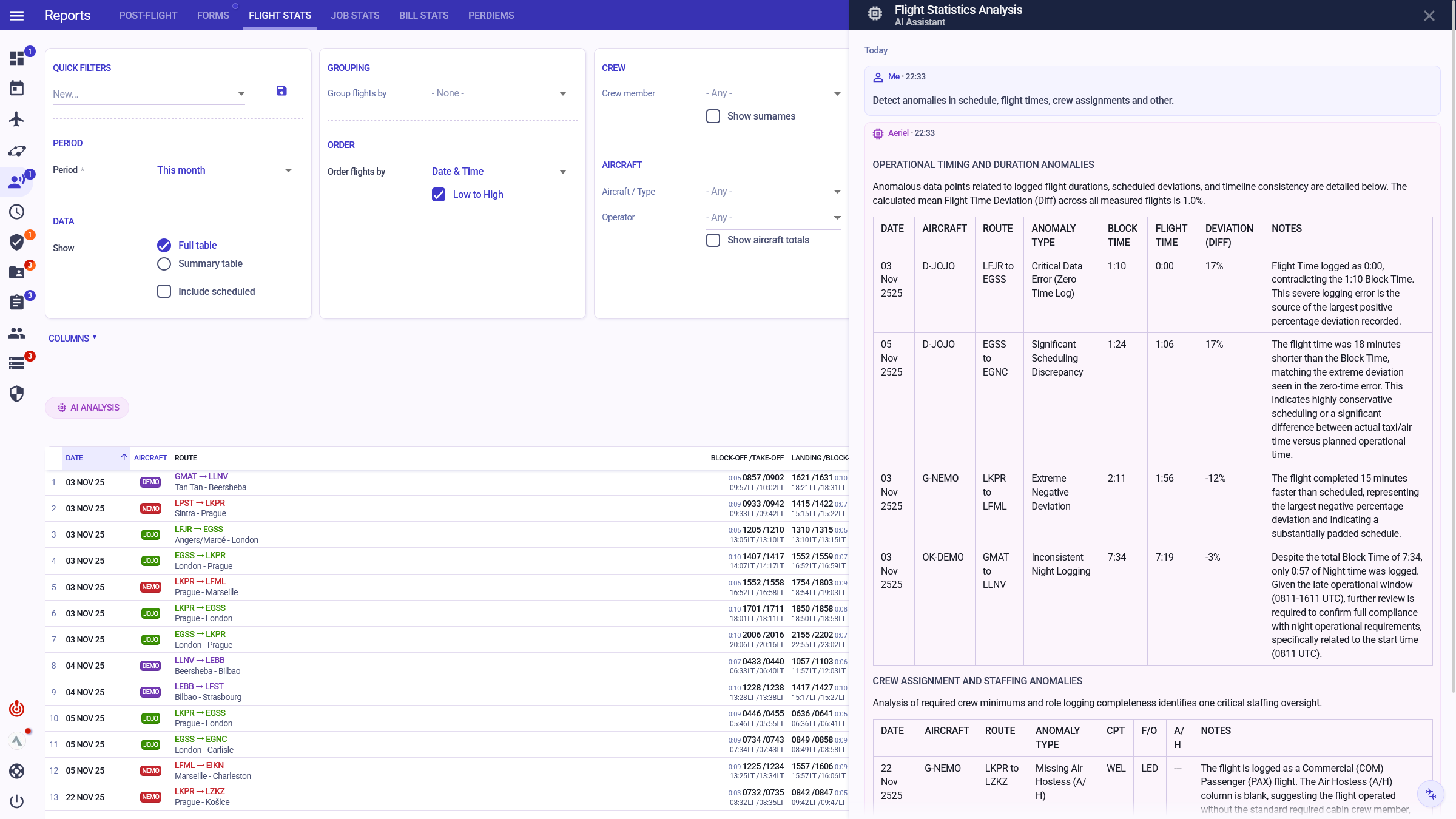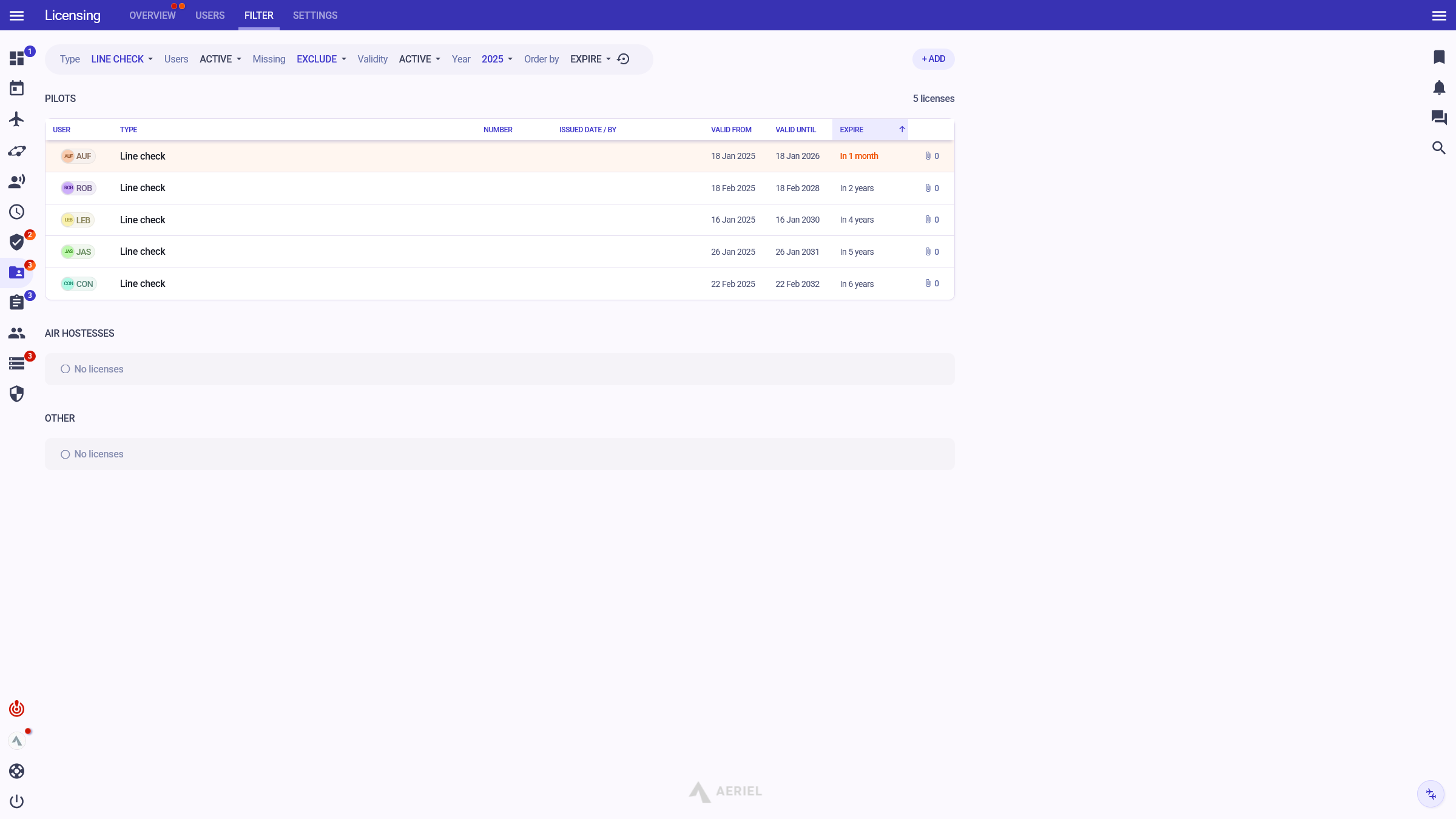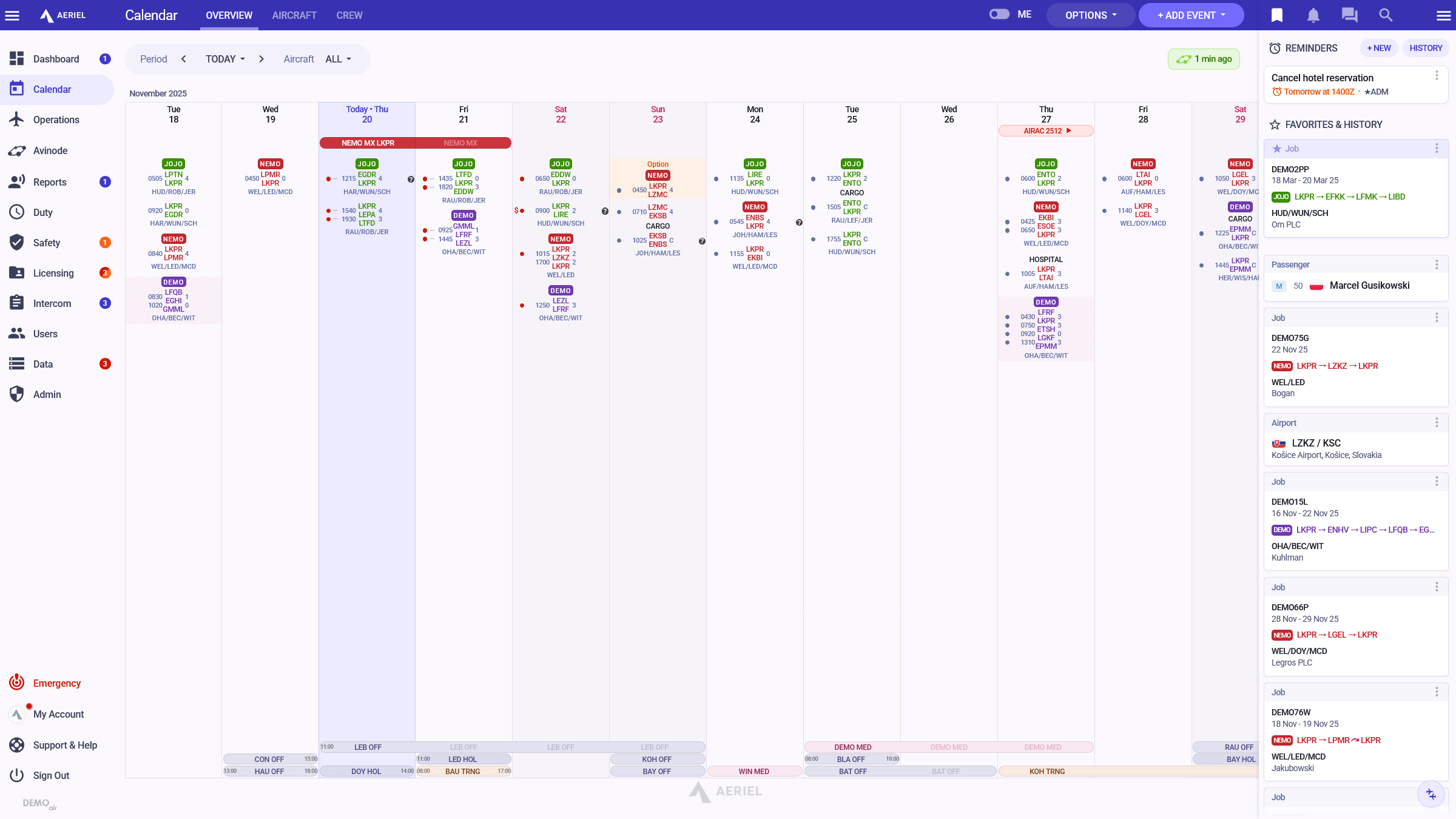 "Since we switched to Aeriel, our internal communication has significantly improved; it eliminated unnecessary e-mails. I have all important information at a glance — airport classifications and qualifications, duty exceedance, and many more."