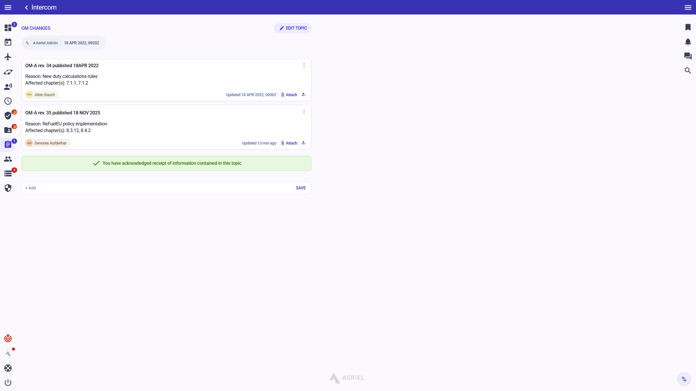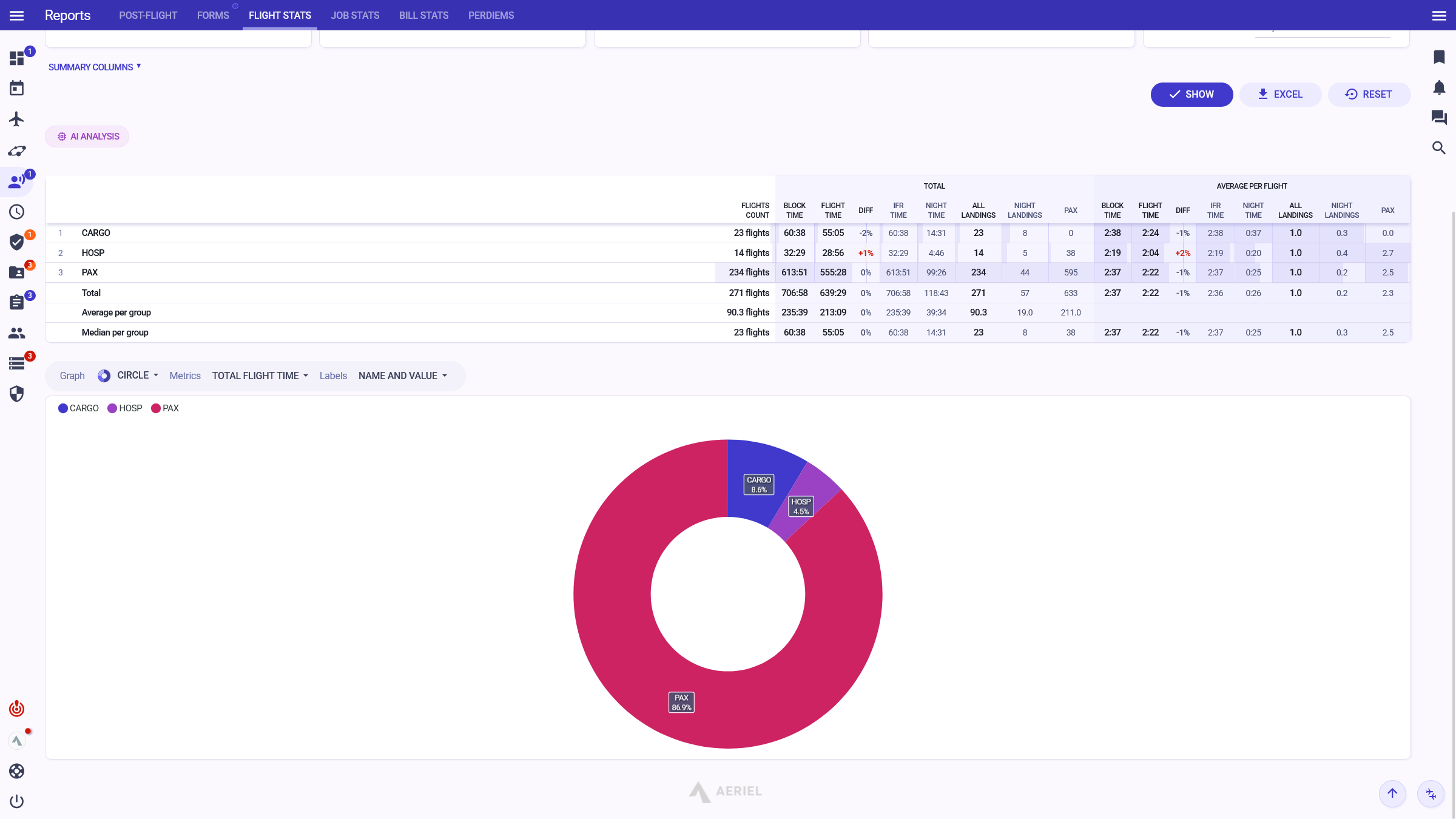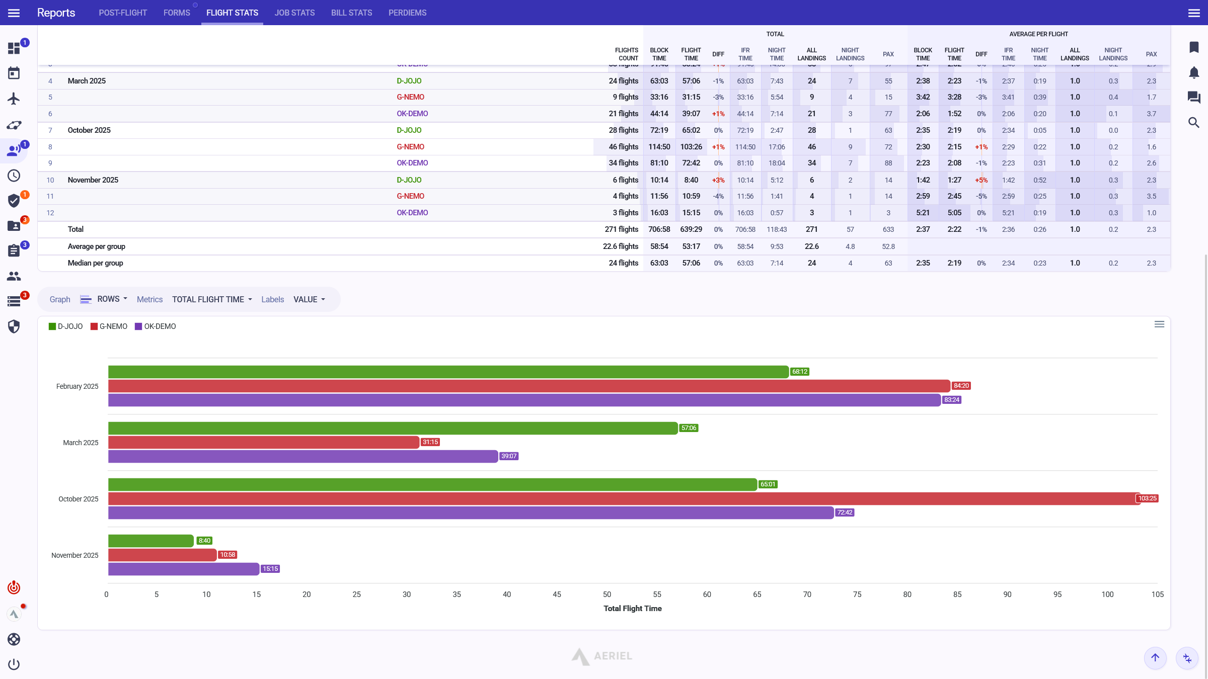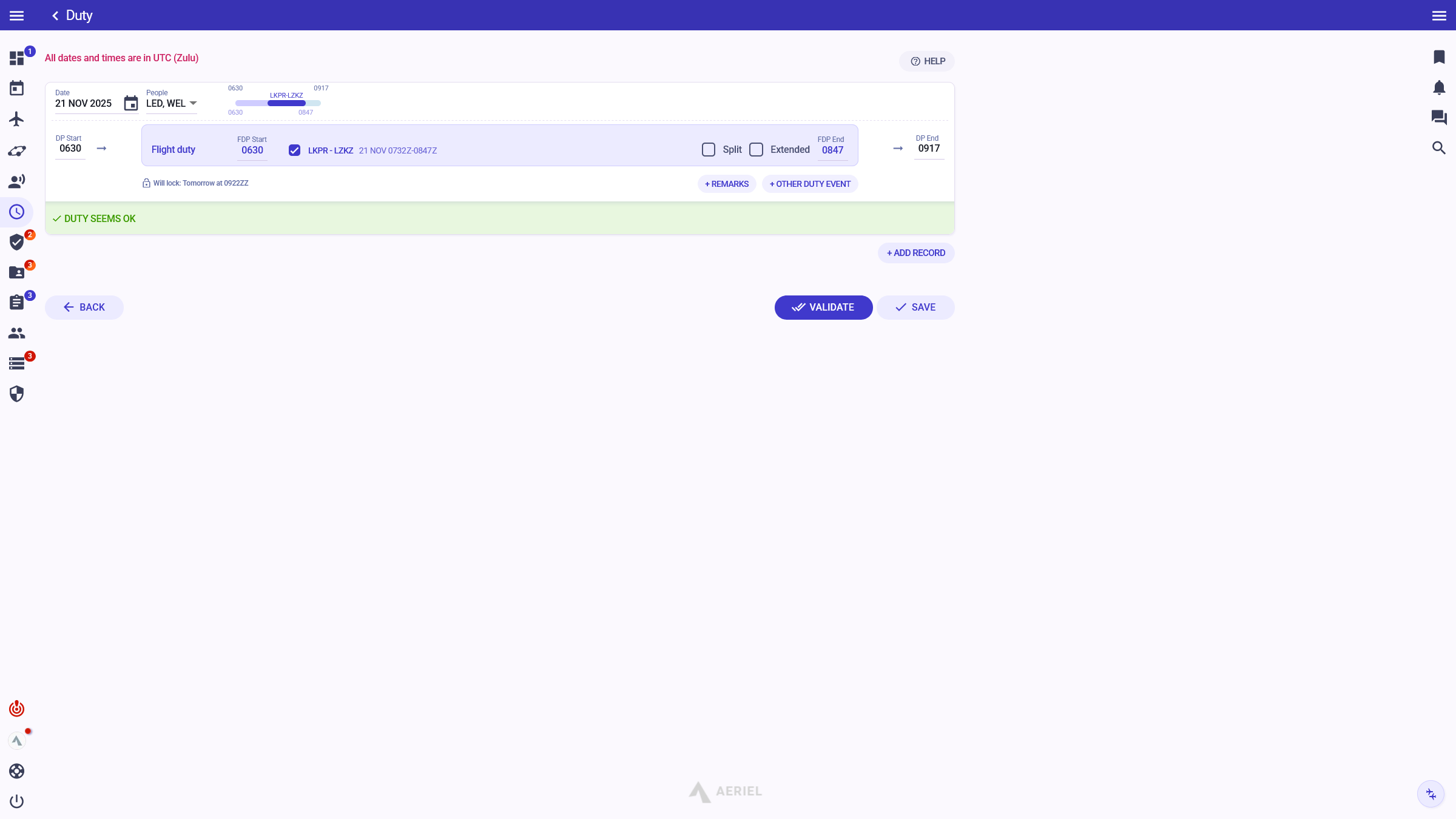 "Since we switched to Aeriel, our internal communication has significantly improved; it eliminated unnecessary e-mails. I have all important information at a glance — airport classifications and qualifications, duty exceedance, and many more."