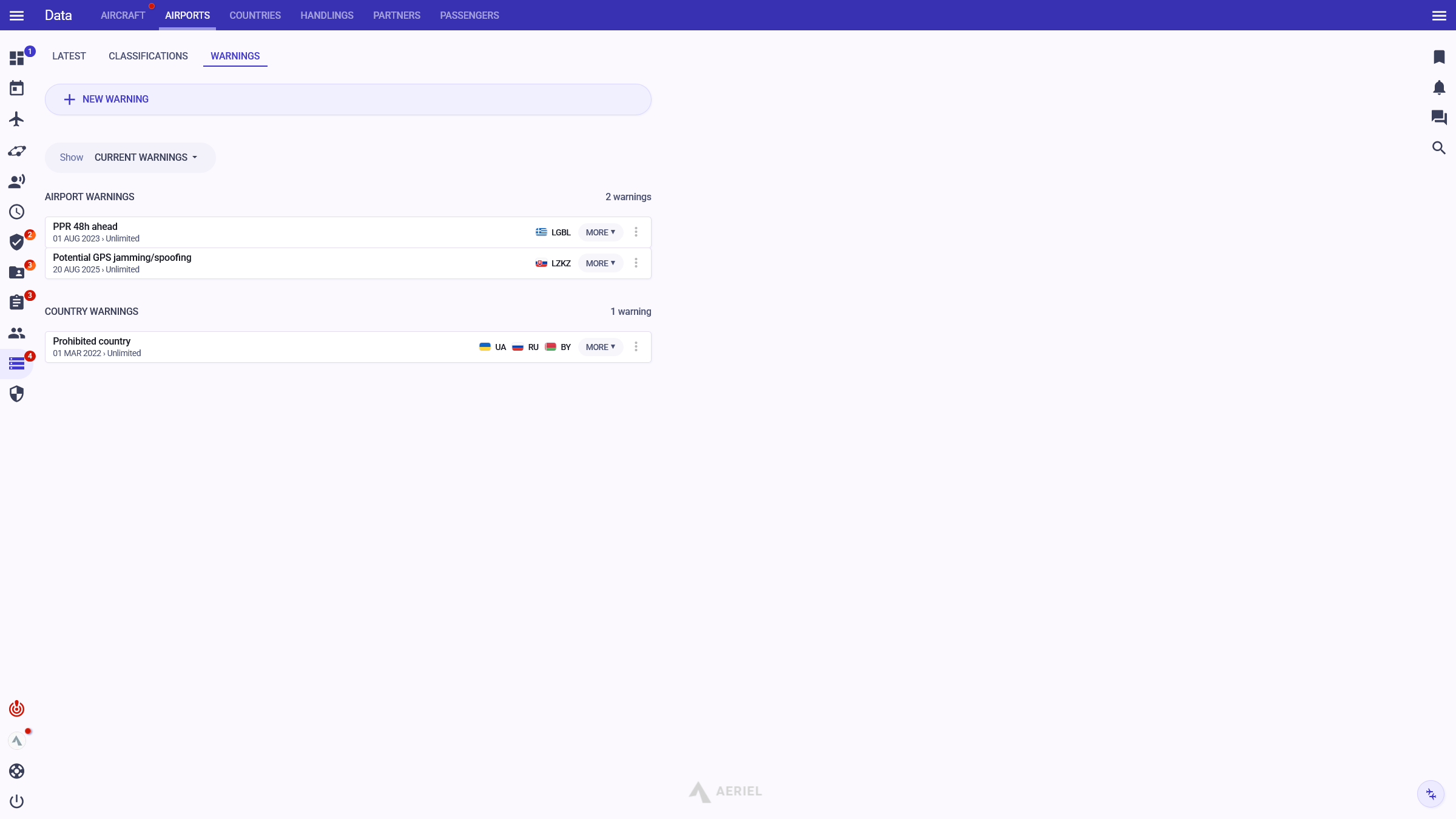 PNRGo is a leading system for business and charter operators to comply with PNR, API, eu-LISA and sanctions. Send PNR data (flight, passenger, crew data) directly from Aeriel through PNRGo to the respective authorities. Comply with PNR, API, eu-LISA requirements. Automatic sanctions lists monitor warns you about potential issues.
