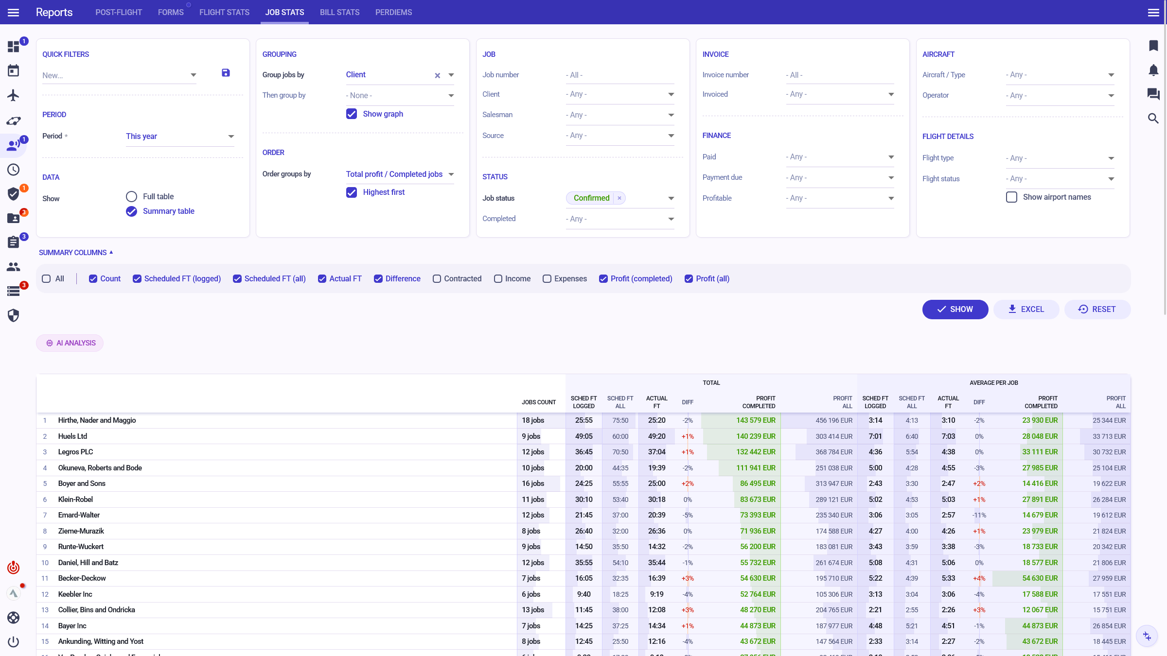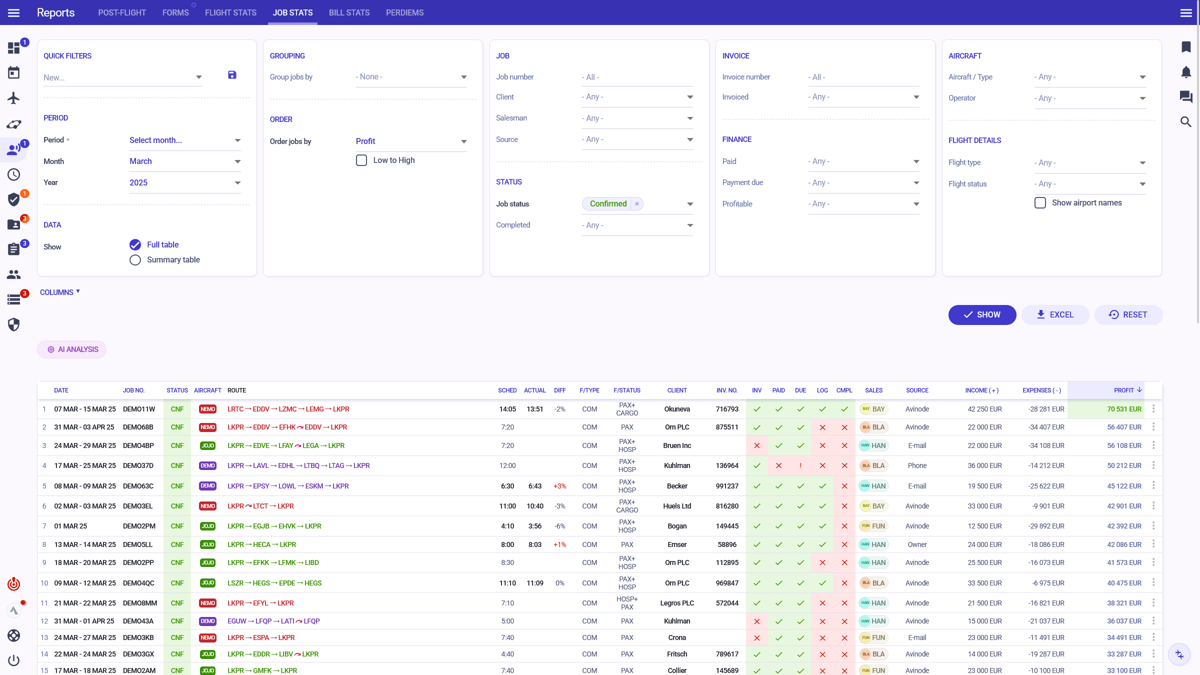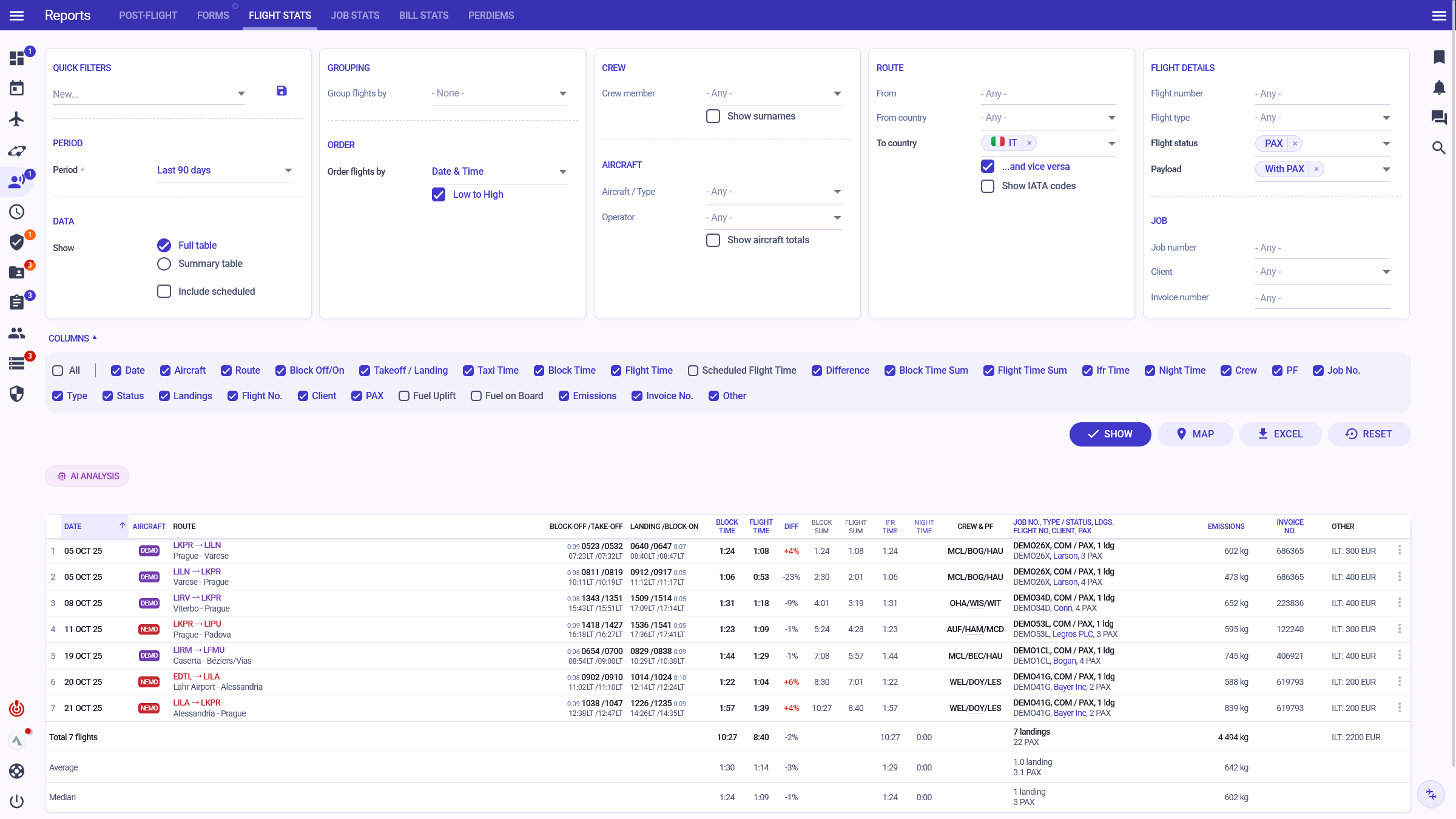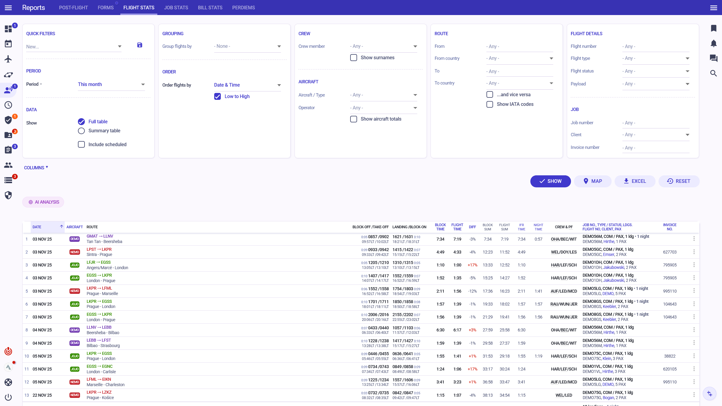 Combine powerful filters for complex flight, trip or finance data reports, such as: