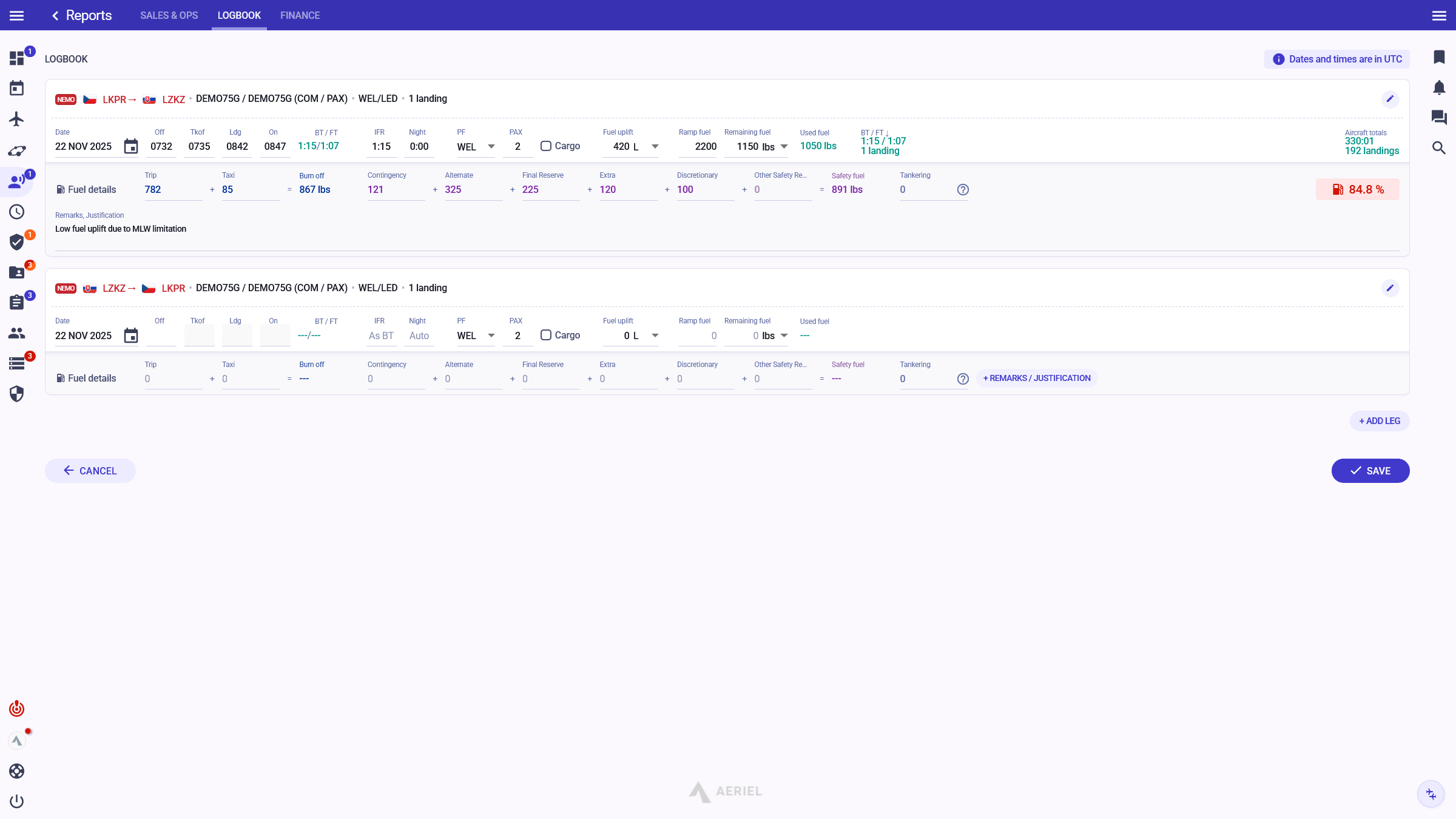 Aeriel is a powerful management and flight scheduling platform designed for business aircraft operators and airlines.