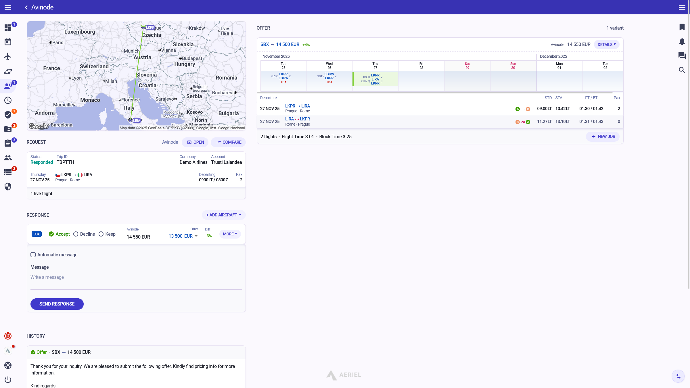 "We perceive Aeriel as a reliable tool for the complex organisation of our private flights, and we especially appreciate its user flexibility in the administration of frequent program updates or other operational last-minute changes."